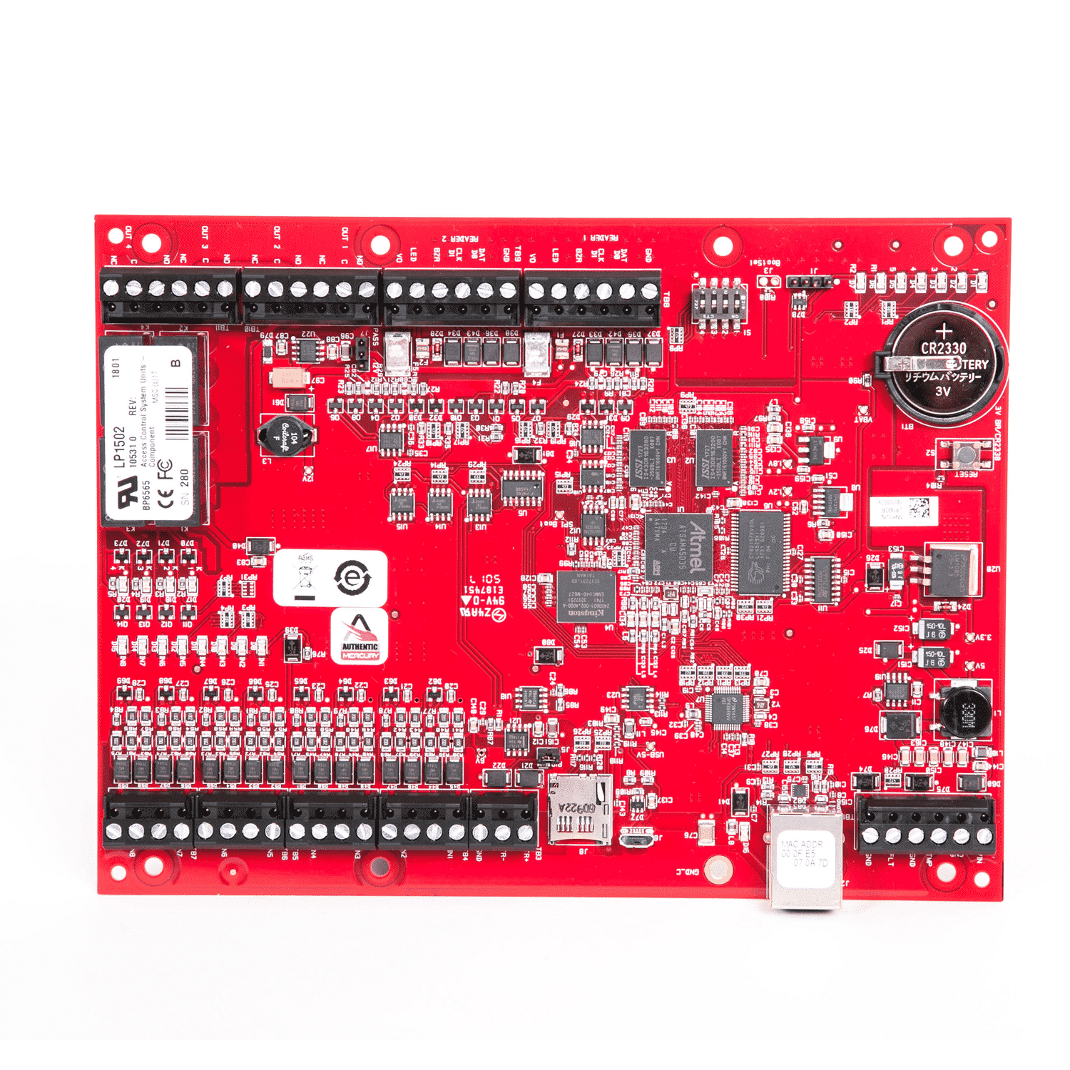 With native connectivity, the high-performance LP1502 functions independently of the host for performing numerous access control applications and supports OSDP, OSDP Secure Channel, keypads, biometric readers, Wiegand, clock and data, magnetic stripe, F/2F, and supervised F/2F reader technologies. System configuration and setup are provided through Mercury OEM partner software applications.
