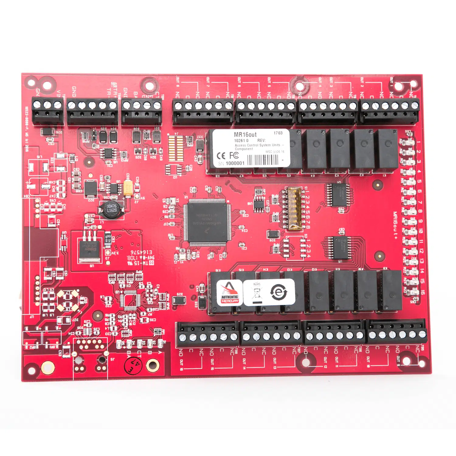 The MR16OUT is configurable to control a variety of outboard devices for general facility control such as lighting, heating/cooling, door, and elevator control. Devices can also be activated by the condition of selected system devices, either locally or regionally, without host intervention.